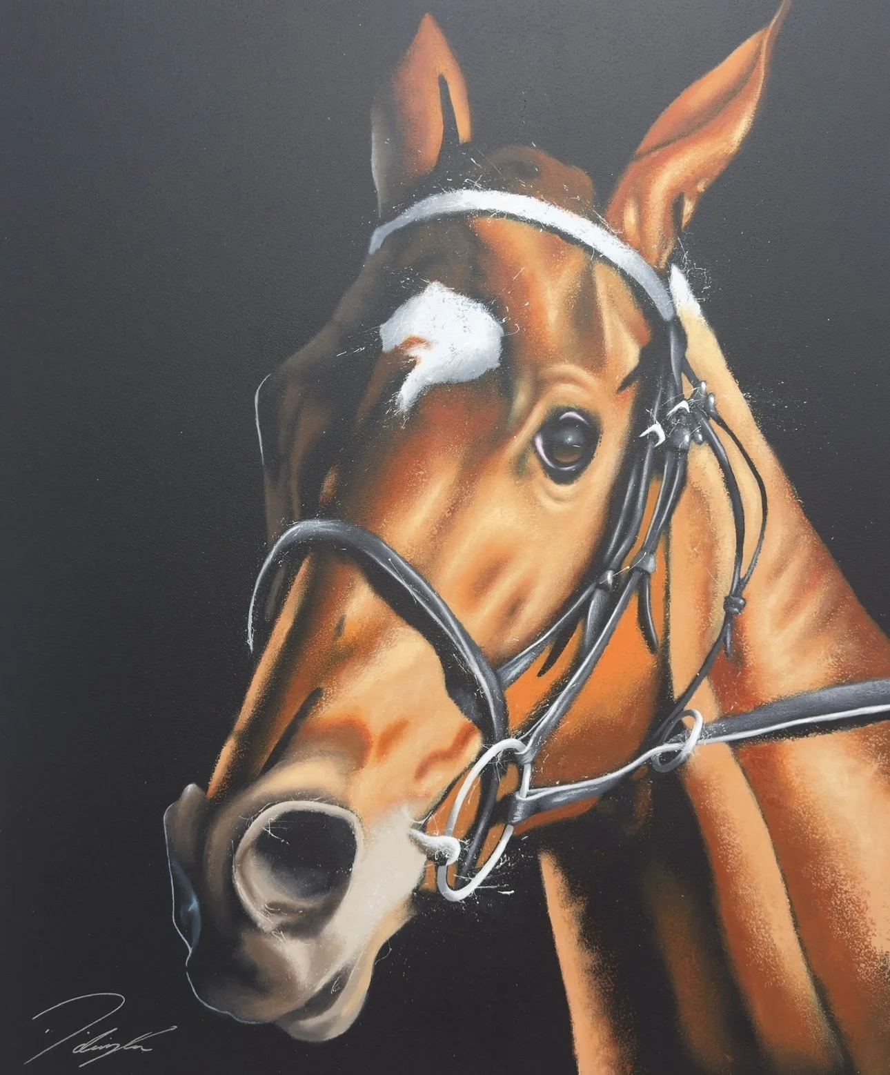 Here’s a look at my latest commissioned racehorse painting, created for a collector. I love giving collectors the opportunity to experience the journey behind their custom artwork, which is why I document the process from start to finish. So often, you only get to see the final painting, but I believe there’s something special about being involved every step of the way.
