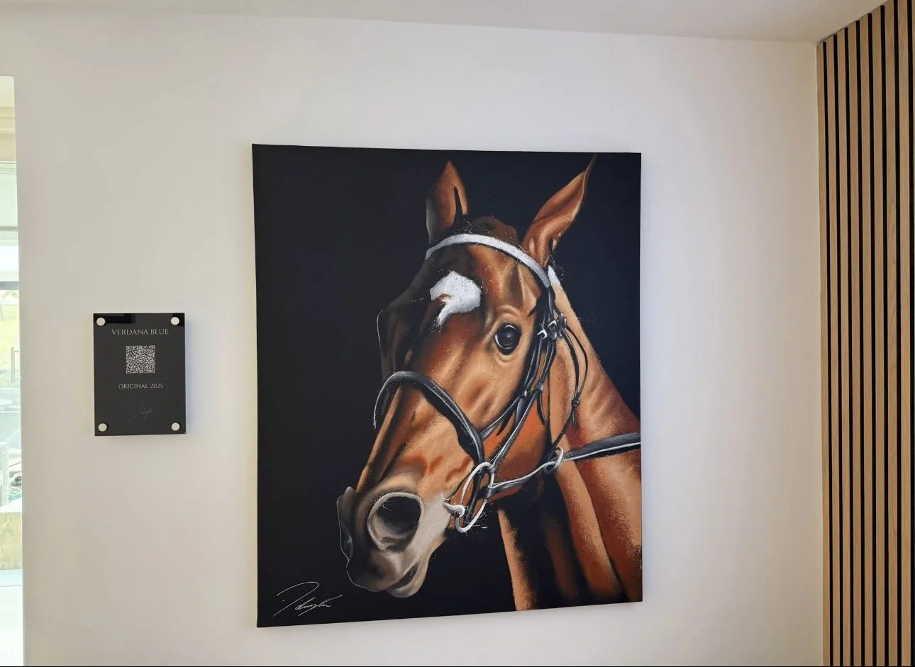Each custom horse painting comes with a personalised plaque. On the plaque, you’ll find a QR code that, when scanned, reveals the full creation process of that unique, one-of-a-kind piece of art.